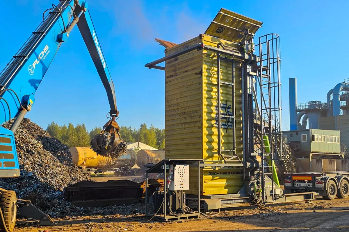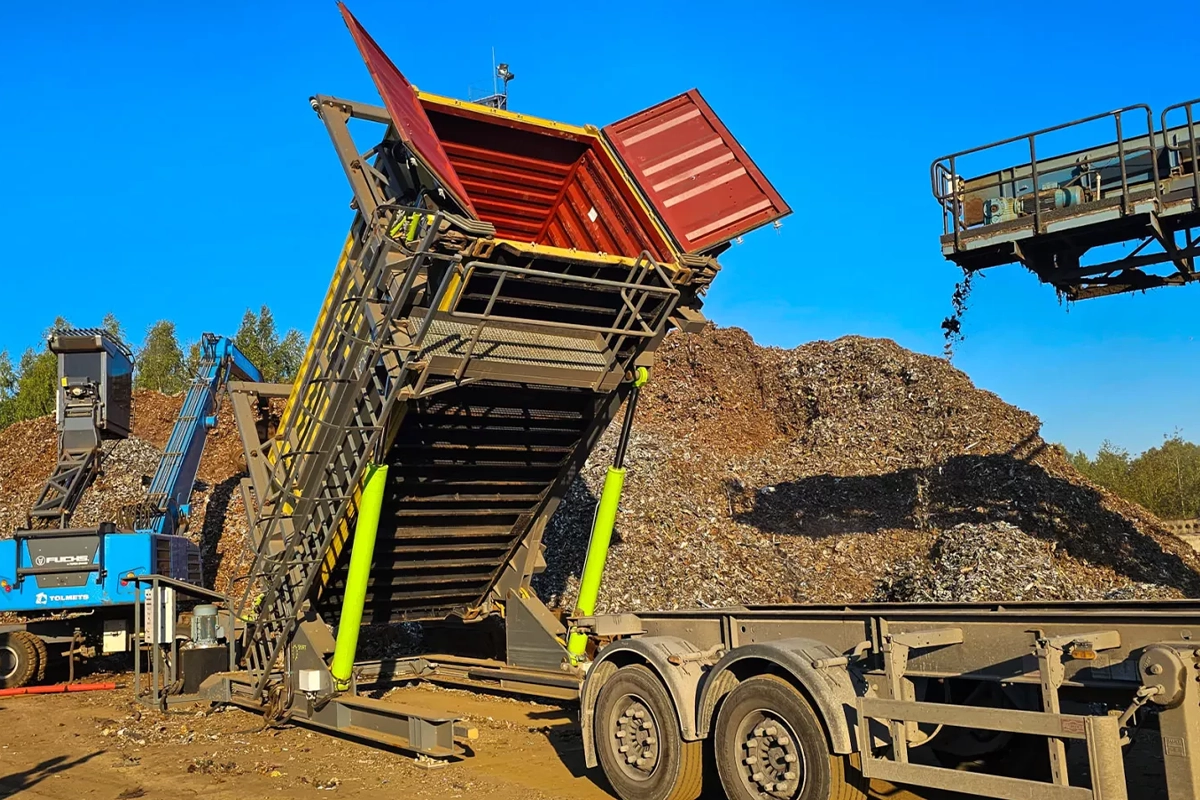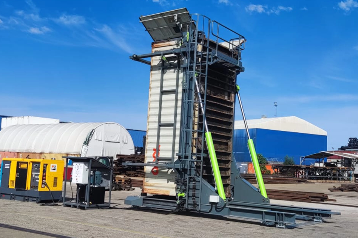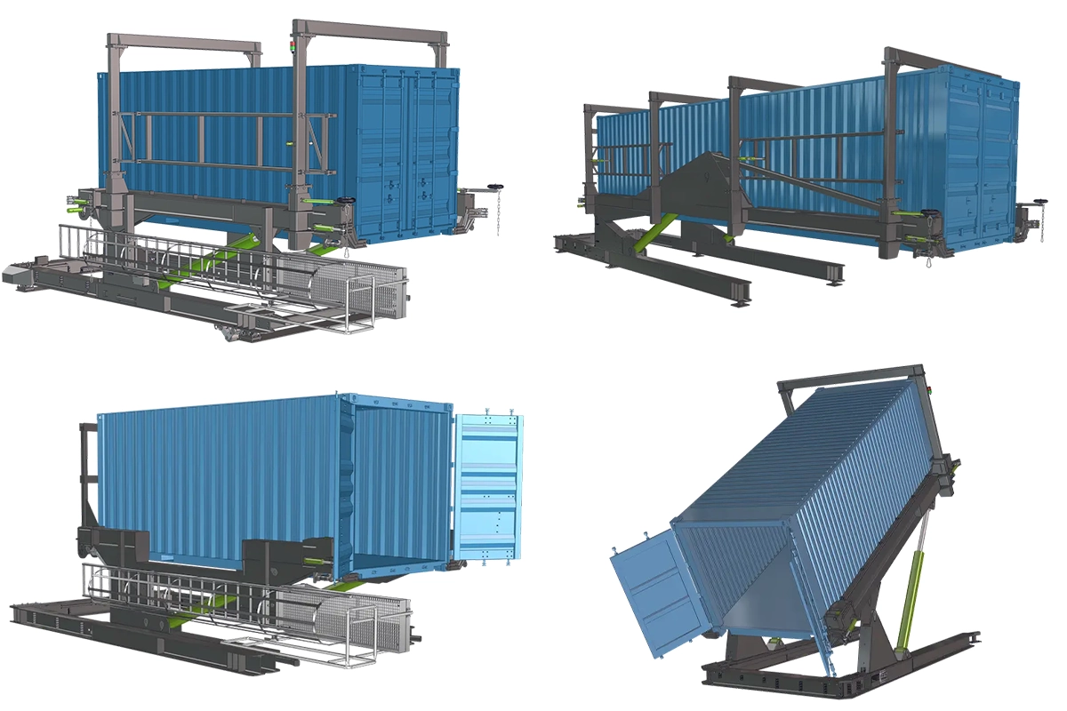 Le basculeur de conteneur TILTER détient des caractéristiques uniques, brevetées, pour effectuer un chargement rapide et optimum du conteneur.